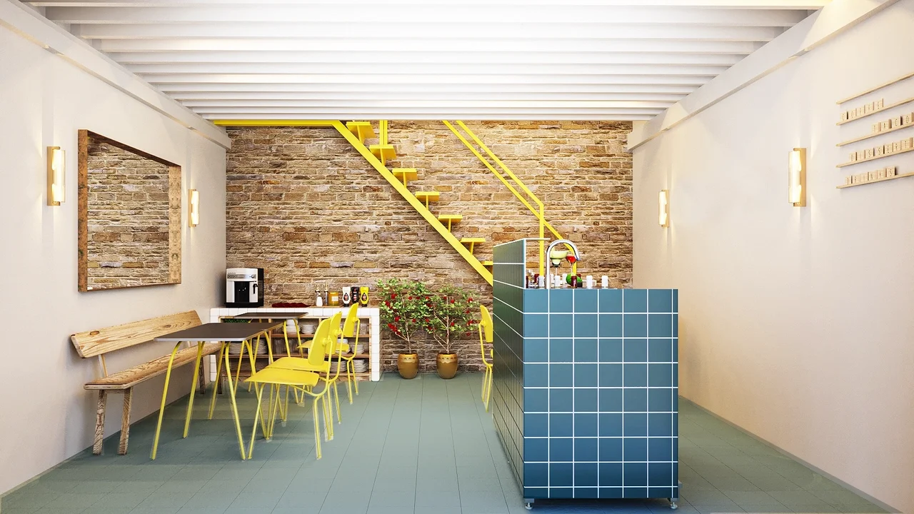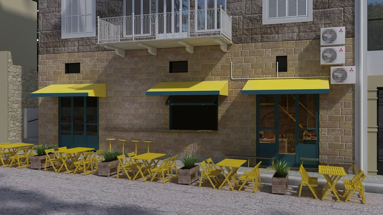 Odette’s 2.0 is a twist on the first dining concept. The aim is to design a local small scale eatery serving groumet tacos and wraps. The look has a contemporary havana feel that mixes industrial materials to give the space an edge. Bright colors and steel are used to balance out the softer stone wall and heritage facade. This project was designed in collaboration with Firas Abu Fakhr.