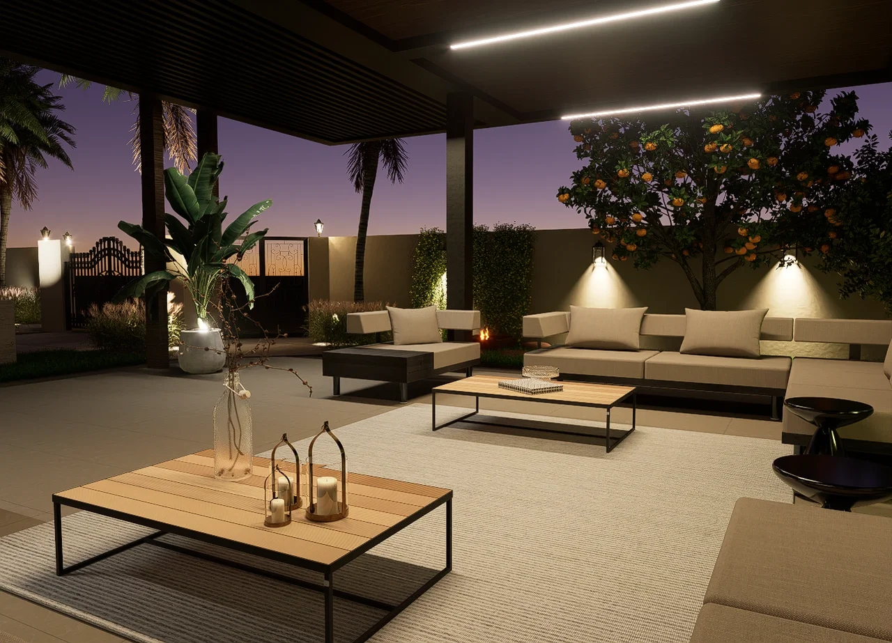 The Client was looking for a new proposal that is soft and elegant. Her main requirement was to have multiple seating areas at different levels and to have openness towards a pool area and an outdoor dining area that celebrates the good weather when possible in UAE. Colorful flowers and smaller trees are to be used to create a light contemporary resort style feel.