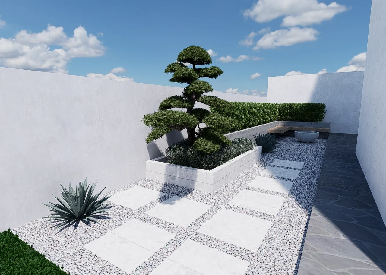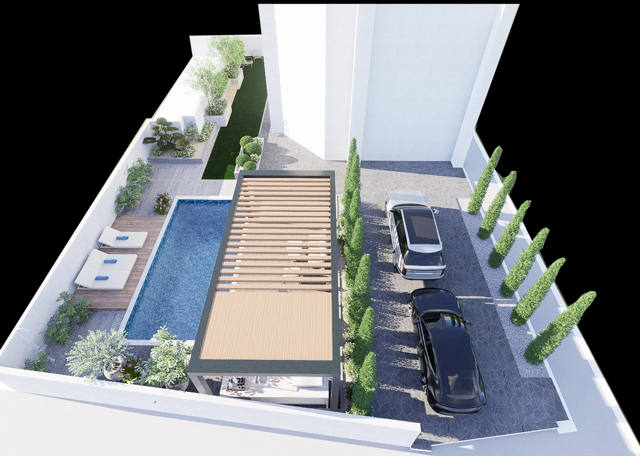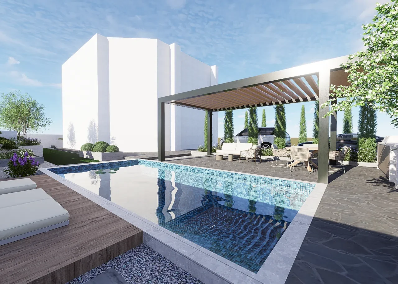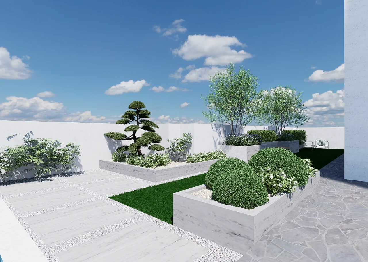 Villa F, a contemporary villa in Mount Lebanon required a simple and elegant garden design that allows for several functions including a shaded area an6d green space.