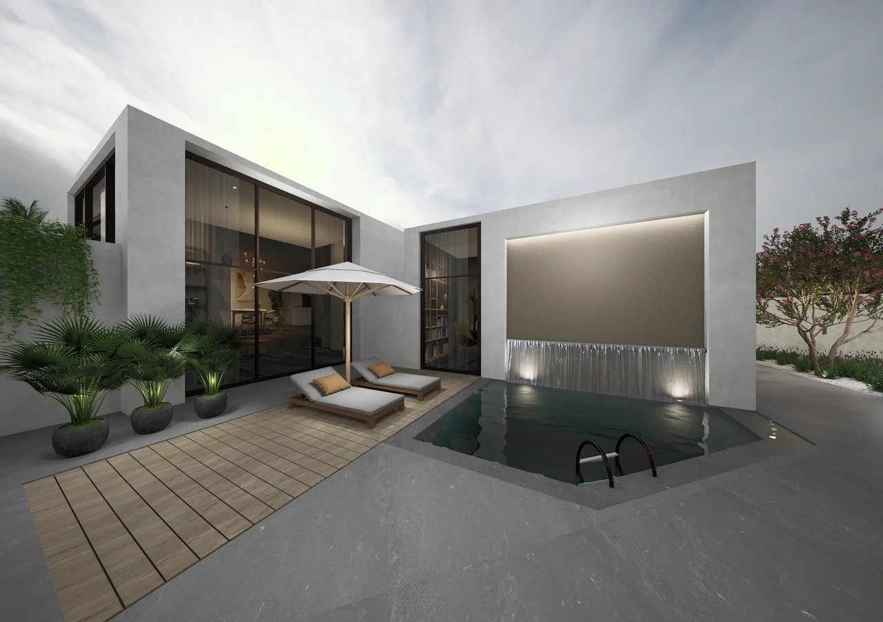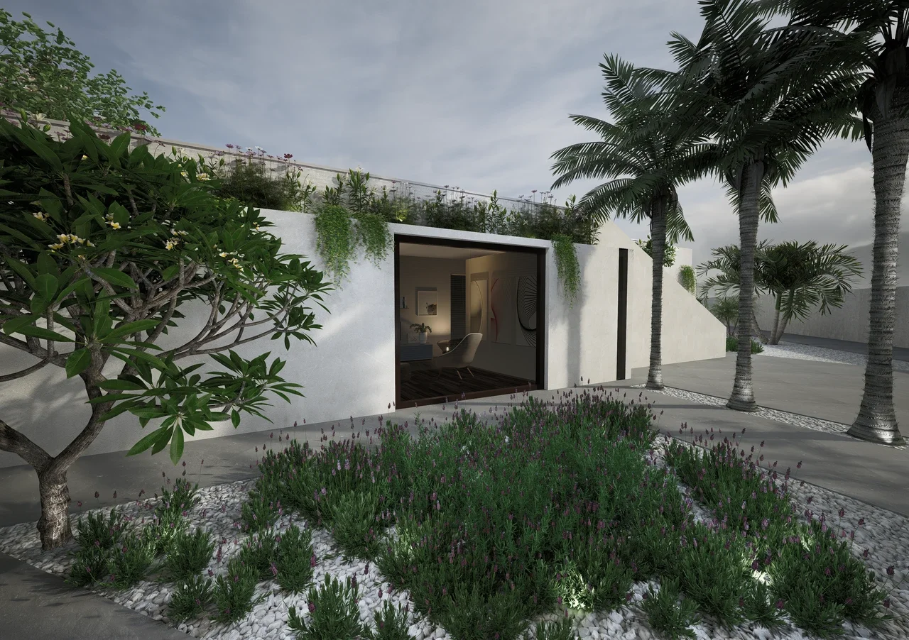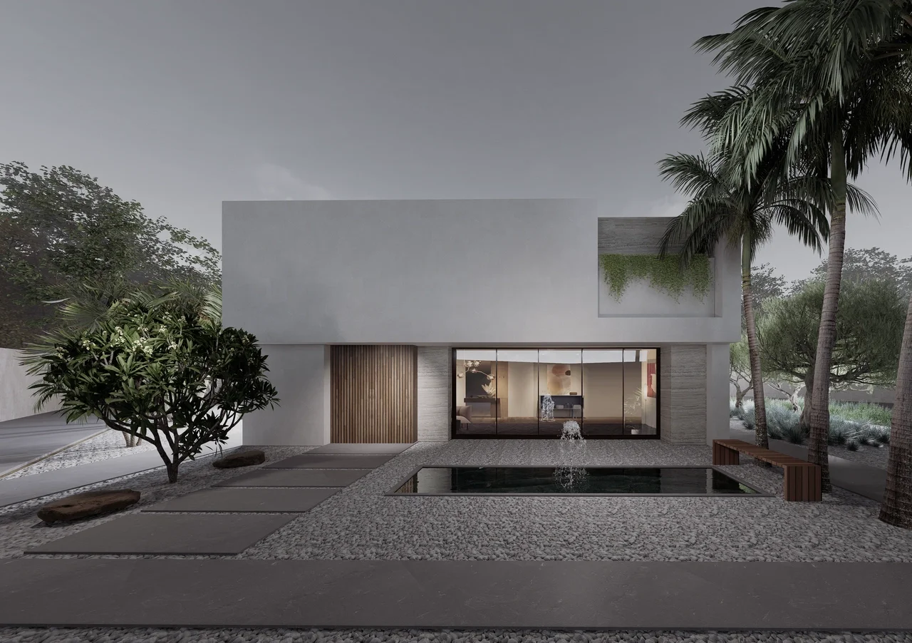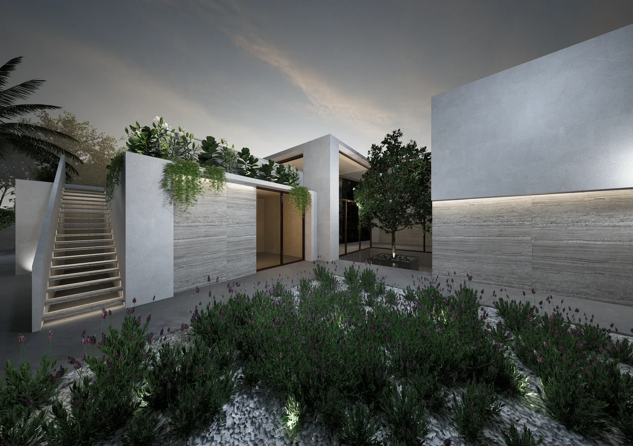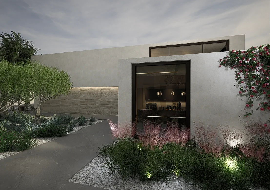Lifestyle patterns and needs are constantly evolving. This design was curated for a female CEO living in Kuwait. The client is a single lady enjoying her time hosting friends and family as well as working on her business and developing her strategies. As an orchid lover, the design was initially inspired by the orchid petals to inform the plan. Each of the petals carry a function and are distributed around a central space which is adjacent to a floating feature tree. The colors chosen for the finishes are soft and earthy. The landscape is minimal and verging on a natural feel. The orchid plan offers exciting views from different corners of the villa. The project was presented a concept level to be studied as the client is still residing in her previous home. The client, also involved in the real estate industry commissioned the design as a feature home that leverages its unique conceptual design and story telling aspect to boost the property value and in that she also sees it as an investment.